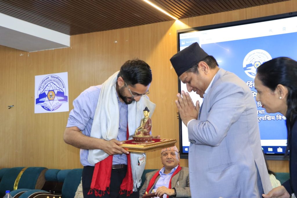 विश्वविद्यालयका डिन प्रा. किशन दत्त भट्टले विश्वविद्यालयले गुणस्तरीय शिक्षाका लागि गरीएका प्रयासहरूबारे मन्त्री पोखरेललाई जानकारी गराए ।