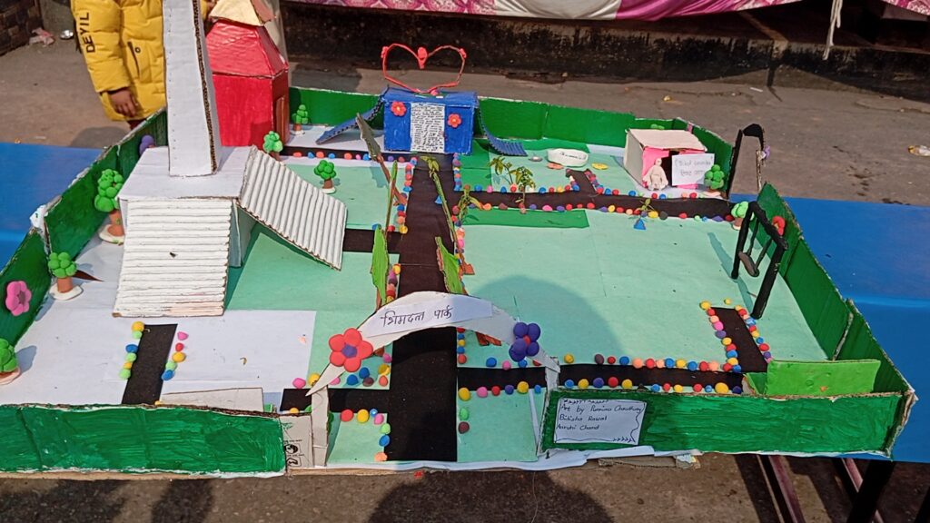कला प्रदर्शनीमा विद्यार्थीहरुले निर्माण गरेका गणेश भगवानको मुर्तिदेखि भीम बाटिकासम्म प्रदर्शनिमा राखिएका थिए । पूर्णिमा चौधरी, बिडिशा रावल र आरुही चन्दले बनाएको भीम वाटिकाले अभिभावकको ध्यान तानेको थियो । भीमदत्त नगरपालिका वडा नं. १८ स्थित पार्कका सबै संरचना र सौन्दर्य समेटेर बनाएको उक्त सामाग्रिले उनीहरुमा कला शिप कति छ भन्ने कुरालाई सहजै अनुमान लगाउन सकिन्थ्यो ।